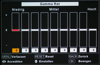 Gerade bei begrenztem Kontraspotenzial muss das Gamma (das Verhältnis zwischen Signalstärke und tatsächlich auf der Leinwand ausgegebener Helligkeit) besonders genau justiert sein, um in sowohl dunklen als auch hellen Filmszenen stets alle Bilddetails gut sichtbar abzubilden.