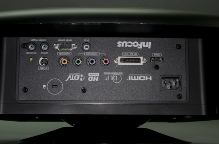 Schon deutlicher abgeschlagen ist der Infocus Projektor: Er bietet keinerlei Lensshift und auch sein Zoombereich ist im Vergleich zu seinen LCD-Konkurrenten deutlich engeschränkt: