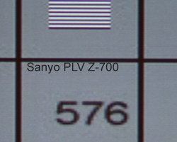 Mit nahezu identischen Ergebnissen teilen sich der Epson und der Sanyo Beamer den zweiten Platz. Da es sich bei ihnen um 3-Chip Projektoren handelt, müssen die drei LCDs im Lichtweg so genau justiert sein, dass sie auf der Leinwand ihre drei Grundfarbbilder möglichst deckungsgleich abbilden. Beide Projektoren zeigen nur minimale Farbsäume, die im Filmbild nicht auffallen. Eine perfekte Konvergenz wie der X10 bieten sie aber nicht.
