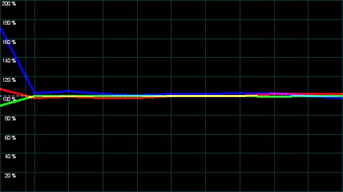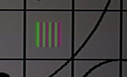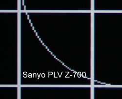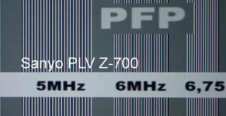 Auch in der Skalierung erreicht der Sanyo Projektor lediglich den dritten Platz. Der Grund ist eine ungenaue horizontale Skalierung, schon ab 5MHz sind hier sichtbare Skalierungsschwankungen erkennbar.