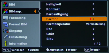 Ein übersichtliches Menü mit zuverlässiger Fernbedienung ist nur die halbe Miete, denn letztendlich kommt es auf die Einstellmöglichkeiten an. Viele Parameter machen ein gutes Bild aus: Farben, Schärfe, Kontrast, etc.. Um all diese auf persönliche Bedürfnisse, Raum oder maximale Leistung zu trimmen, sind vielseitige Bildparameter unerlässlich.