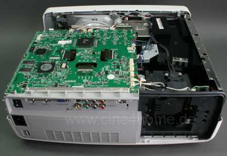 Das Schlusslicht in der Lautstärke bildet der Infocus Projektor. Dies ist weitgehend auf seine DLP-Technik zurückzuführen, denn neben den Kühlüftern dreht sich in einem Single Chip Beamer wie dem X10 ein Farbrad mit immerhin 7200 Umdrehungen pro Sekunde. Dies ist ein erheblicher Lautstärkefaktor, der den Infocus hörbar lauter als seine Konkurrenten macht, aber auch er stört im Eco-Modus den Filmton nicht allzu sehr.