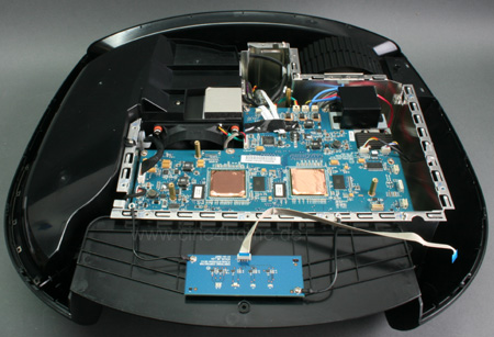 Und wieder treffen wir auf "Infocus-Tradition": Mit dem schwarzen Klavierlack und der blauen elektrischen Beleuchtung ist der Infrarotgeber des X10 zwar ein echter Hingucker, doch die Funktionalität wurde sträflich vernachlässigt:
