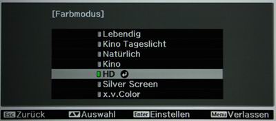 Wer im Farbraum auf Perfektion Wert legt, der aktiviert den "xv.Color-Modus", eine Art Plug & Play Modus in Sachen Videonorm. Hier bietet der Projektor einen sehr gut abgestimmten Farbraum, ab Werk.
