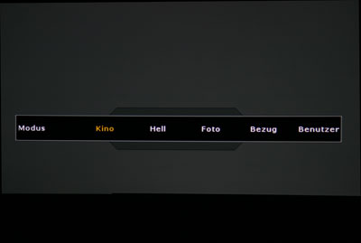 Wie beim Epson stehen auch hier verschiedene Presets zur Verfügung, deren Bezeichnung aber zu wünschen übrig lässt. Zu bemängeln ist auch die langsame Reaktionszzeit, teilweise dauert es mehrere Sekunden, bis der Projektor den Tastendruck auf der Fernbedienung quittiert.