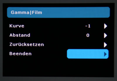 Gerade bei begrenztem Kontraspotenzial muss das Gamma (das Verhältnis zwischen Signalstärke und tatsächlich auf der Leinwand ausgegebener Helligkeit) besonders genau justiert sein, um in sowohl dunklen als auch hellen Filmszenen stets alle Bilddetails gut sichtbar abzubilden.