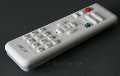 Zu sehr gespart hat Acer bei der Fernbedienung des 7530. Kaum größer als eine Scheckkarte erinnert sie mehr an die primitiven Modelle billigster Präsentations-Beamer.