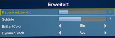 Der H7530 ist erneut mehr als spartanisch in den Einflussmöglichkeiten, lediglich mit einem einzigen Schieberegler lässt sich das "Degamma" beeinflussen, weitere Korrekturen sind nicht möglich. .