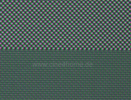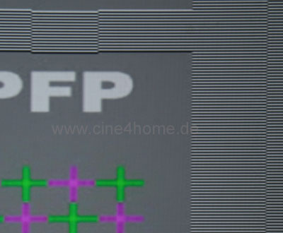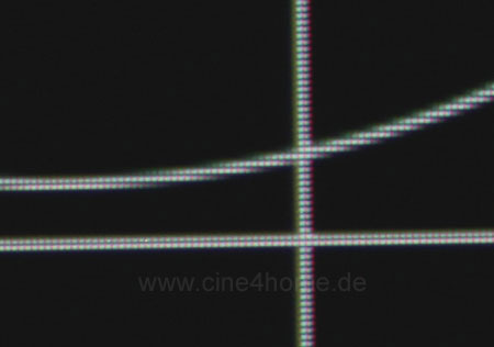 Da es sich beim 2900er um einen 3-Chip Projektor handelt, müssen die drei LCDs im Lichtweg so genau justiert sein, dass sie auf der Leinwand ihre drei Grundfarbbilder möglichst deckungsgleich abbilden. Offenbar fließt in der Preisklasse des TW2900 nicht die letzte Perfektion in diese Werksjustage, denn eine gewisse Konvergenzverschiebung ist durchaus zu verzeichnen.