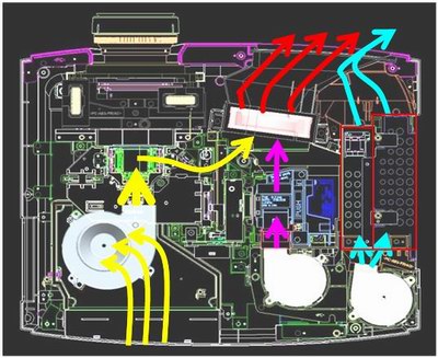 LCD-Projektoren haben in der Belüftung einen strukturellen Nachteil: Da die einzelnen LCD-Panels wie kleine Dias durchleuchtet werden, aber gleichzeitig sehr gut vor Überhitzung geschützt werden müssen, wird die Kühlluft innerhalb des Lichtweges direkt an ihnen vorbei geleitet. Dadurch steigt das Risiko, dass das eine oder andere Staubkorn direkt auf den LCDs hängen bleibt und störend als Fleck vor allem in dunklen Filmszenen sichtbar wird.