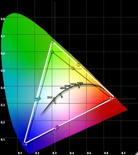 Messinstrumente vorausgesetzt, erreicht man so eine gleichmäßige D65-Farbtemperatur, die schon ab 10% Helligkeit eine hohe Genauigkeit aufweist und für das menschliche Auge als nahezu perfekt ausfällt. Der Blauüberschuss nahe bei Schwarz ist LCD-typisch und wenig augenfällig.
