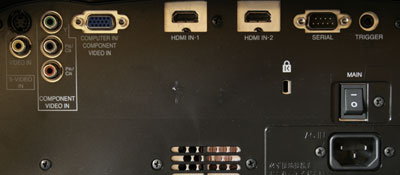 Keine Neuigkeiten sind bei den Anschlüssen zu verzeichnen. Die Rückseite des Beamers bietet den notwendigen Standard, darunter zwei HDMI-Buchsen nach 1.3.