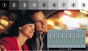 Nach Auswahl der Referenz kann wiederum die Helligkeitsverteilung mit einem praktischen Equalizer in neun (!) verschiedenen Bereichen unabhängig voneinander justiert werden.