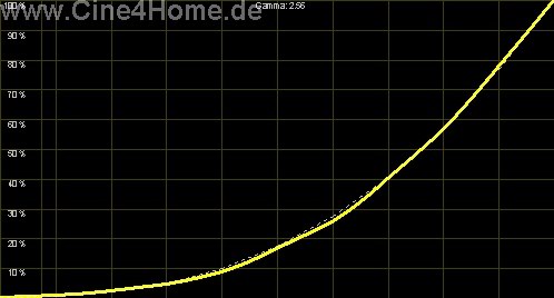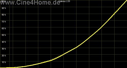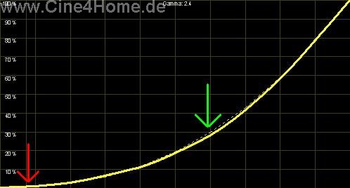 Mit der Fernbedienung kann sogar jederzeit eine Grautreppe eingeblendet werden, die die Abstimmung und Funktionsweise des Equalizers intuitiv unterstützt (Bild oben). Für technisch fortgeschrittene Leser wird folgendes Diagramm der Gammakurve weiteren Aufschluss geben:
