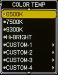 Regelmäßige Leser unsere Webseite werden wissen, dass die Einstelloptionen bezüglich Gamma und Farbtemperatur besonders wichtig sind. Hier gibt sich der TX200 keine Blöße: Technisch präzise und verständlich benannt kann der Nutzer aus verschiedenen Werkseinstellungen die gewünschte Farbtemperatur wählen: