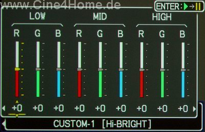 Gegenüber dem Vorgänger TX100 wurde hier noch der "Mid"-Bereich eingefügt, der nun auch einen Weißabgleich in mittleren Helligkeiten ermöglicht. Dadurch wird die mögliche Präzision der Einstellung deutlich erhöht, kein anderer Projektor dieser Preisklasse bietet des derzeit am Markt.