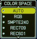 Besonders interessant ist die Funktion "Color Space", die eigentlich besser in die "Picture"-Rubrik gepasst hätte. Hier kann zwischen verschiedenen Farbräumen gewählt werden, je nach verwendeter Quelle.