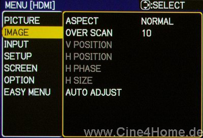 Die zweite Rubrik "Image" bietet praktische Parameter zur Justage des Bildformats, Overscans und der Bildlage.