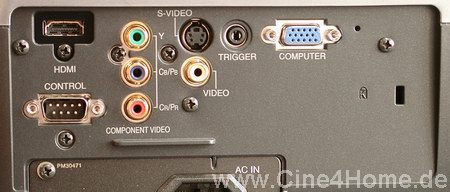 Bei den Anschlüssen hat sich gegenüber dem Vorgänger wenig getan. Wie bei nahezu allen aktuellen Modellen wurde der DVI-Eingang durch die HDMI Variante ersetzt. Dies erhöht zwar die Anzahl der möglichen digitalen Übertragungsarten, doch die Zuverlässigkeit von HDMI-Steckerverbindungen lässt nach wie vor zu wünschen übrig. Daher empfehlen wir eine möglichst dauerhafte Installation des Projektors.