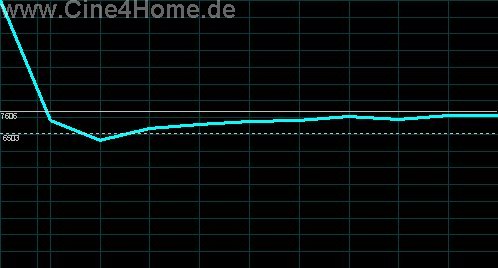 Wie bei dem Farbraum gilt auch für die Farbtemperatur bei neutralen Graustufen: Je besser sie auf unsere Videonorm abgestimmt ist, desto akkurater und glaubwürdiger ist die Farbdarstellung im Bild. Und natürlich ist auch hier eine gute Werksabstimmung besonders begrüßenswert, da durch sie der Nutzer vor schwieriger Einstell-Arbeit verschont wird. Wie für den Farbraum bietet der TX200 auch für die Farbtemperatur unterschiedliche Presets, die technisch klar mit ihrer Farbtemperatur bezeichnet sind: 6500K, 7500K und 9300K. Die für das Heimkino relevante Farbtemperatur ist "6500K" (D65), da sie der Videonorm entspricht. Unsere Messungen dieses Presets zeigen, dass der TX200 ab Werk eine gute Annäherung an die Videonorm bietet.