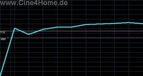Der Anstieg entspricht nun nicht mehr 2,33, sondern 2,48, die Kurve wird durch die Blendenregelung steiler. Zum Glück liegt dieser Wert auch noch im üblichen Toleranzbereich von 2,2 bis 2,5 und wirkt sich nicht negativ aus. Dennoch: Eine bessere Echtzeit-Anpassung der Helligkeitsverteilung (wie z.B. beim VPL100) würde die Blendenregelung gerade bei schnellen Schnitten von Hell nach Dunkel unsichtbar machen und das gelegentlich störende "Flackern" würde wegfallen. Hier haben die Ingenieure noch Raum für Verbesserungen bei künftigen Modellen. Auch das "Low"-Setting wird vom Bildinhalt und der adaptiven Blende beeinflusst. Bei Window-Graustufen erhalten wir hier einen Anstieg von 2,55, also wiederum etwas steiler als "Standard", dafür aber mit besserer Durchzeichnung.