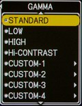 Die Bildplastizität ist nicht nur konstruktionsbedingt, sondern auch "Einstellungssache". Gemeint ist die Abstimmung der Helligkeitsverteilung, sie beschreibt das Verhältnis zwischen tatsächlich ausgegebener Helligkeit und Signalstärke. Aktuelle DVD-Überspielungen legen hier einen Kurvenanstieg von 2,2 zu Grunde, in der Praxis liefern, je nach Raumbegebenheiten, Anstiege zwischen 2,2 und 2,5 optimale Bildergebnisse. Wie bei der Farbtemperatur bietet der PJ-TX300 auch bei der Gamma-Einstellung verschiedene Presets zur Auswahl: "Standard", "Low" und "High". Leider sind diese Angaben nicht so technisch präzise und aussagekräftig wie bei der Farbtemperatur. Die Annahme liegt nahe, dass "Standard" sich an der Videonorm orientiert. Dies bestätigt auch unsere Messung: