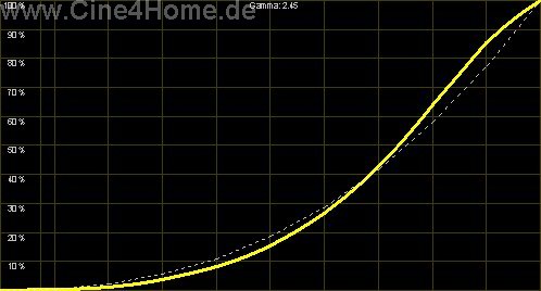 Mit der Fernbedienung kann sogar jederzeit eine Grautreppe eingeblendet werden, die die Abstimmung und Funktionsweise des Equalizers intuitiv unterstützt (Bild oben). Für technisch fortgeschrittene Leser wird folgendes Diagramm der Gammakurve weiteren Aufschluss geben: