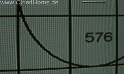 Der Anstieg entspricht nun nicht mehr 2,33, sondern 2,48, die Kurve wird durch die Blendenregelung steiler. Eine bessere Echtzeit-Anpassung der Helligkeitsverteilung (wie z.B. beim VPL100) haben wir an dieser Stelle in unserem TX200 Test angemahnt, doch leider ist auch nach einem Jahr nichts passiert bei Hitachi. Da die Technik aber nicht allgemein stehen bleibt (und bei vielen Konkurrenten auch nicht stehen geblieben ist), müssen wir dieses Defizit bei der Bewertung härter bestrafen, der Kunde kann in diesem Herbst einfach mehr erwarten, auch in dieser günstgen Preisklasse!