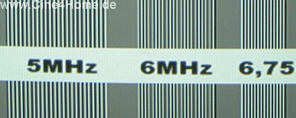 In der Horizontalen rechnet der Projektor das eingehende Signal bis zur höchsten Auflösung zuverlässig, aber nicht ohne Schwächen, um. Gerade im Bereich um 6MHz sind deutliche Linearitätsschwankungen zu erkennen.