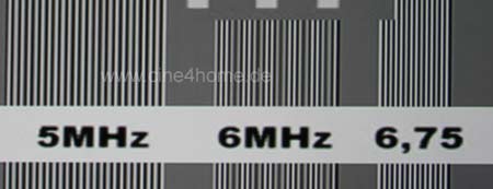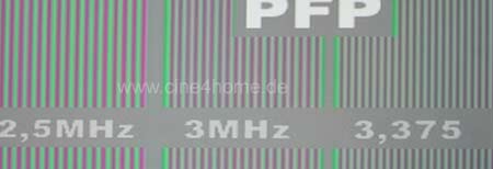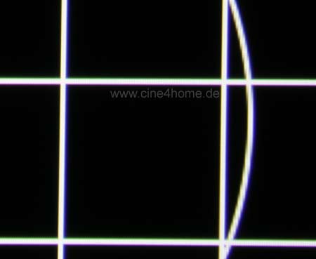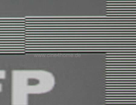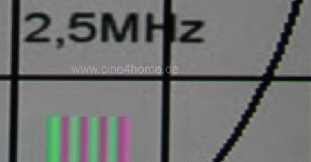 Im Screenshot oben sind Linearitätsschwankungen zu erkennen, die für einen FullHD Beamer eher ungewöhnlich sind. Lobenswert ist hingegen, dass der höchste Auflösungsbereich ohne Pegelabfall in voller Schärfe dargestellt wird. Die Farbauflösung liegt auf gutem, aber nicht hervorragendem Niveau. In kleinen Details sind die Farbkanäle nicht mehr sauber voneinander getrennt, da sind wir in dieser Preisklasse normalerweise Besseres gewohnt.