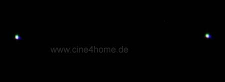 Obiger Screenshot zeigt zwei der projizierten Pixel in der Vergrößerung. Hier erkennt man den leicht blauen Schweif, der sich auch im Gittertestbild gezeigt hat. Das Ergebnis dieses Härtetests liegt auf sehr gutem Niveau, bessere Ergebnisse haben wir in keinem anderen Test bisher verzeichnen können.