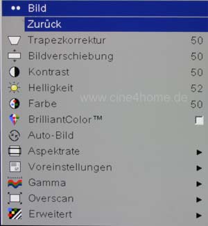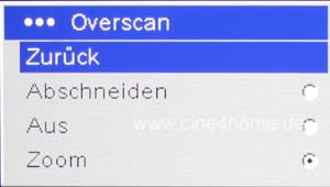 Im Bildmenü bietet der neue Infocus Beamer, wie seine Brüder, eine in drei Stufen regelbare Overscanfunktion. Schaltet man den Overscan "Aus", so wird wie erwartet der gesamte Bildinhalt angezeigt, keine Teile des Bildes werden unterschlagen.