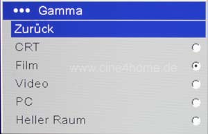 Das Preset "Heller Raum " ist, wie der Name schon sagt, für Räume mit Restlicht gedacht. Hier ist die Gammaverteilung flacher, so dass das Bild im dunklen und mittleren Bereich aufgehellt wird. Für dunkle Räume ist diese Einstellung aber nicht zu empfehlen, da das Bild leicht ausgewaschen wirkt.