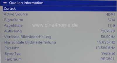 Die letzte Hauptkategorie dient nicht der Anpassung von Parametern auf die eigenen Bedürfnisse, sondern ist eine reine Informationskategorie mit sehr vielen nützlichen Angaben über das gerade eingespeiste Signal