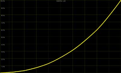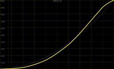 Für perfektionierte Räume mit dunklen Wänden und wenig Streulicht hingegen ist der Modus "CRT" gut geeignet. Mit einem Anstieg von 2,48 wird der Kontrast zwischen hell und dunkel noch stärker herausgearbeitet, wodurch das Bild subjektiv noch plastischer erscheint. Allerdings ist die Durchzeichnung in dunklen Partien sehr fein nuanciert, dass schon geringe Mengen Restlicht hier zu Detailverlust führen können.