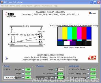 Wie seine Schwestermodelle ist der HD2K ein ungemein kompakter Projektor, der sowohl eine variable als auch feste Installation deutlich vereinfacht. D-ILA typisch erfordert aber auch er einen im Verhältnis zur Bildbreite sehr großen Projektionsabstand. Für große Bilddiagonalen muss der Anwender demnach reichlich Platz im Heimkino mitbringen. Projektionsabstandstabelle "HD2K"