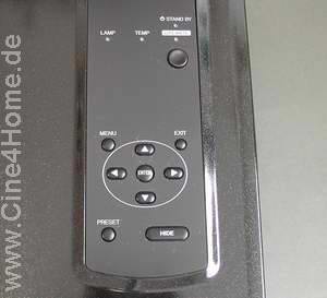 Die Fernbedienung der HD2K Projektoreinheit ist eine gute alte „Bekannte“. Sie wird von einem Malaysischen Dritthersteller gefertigt und findet bei den unterschiedlichsten Projektoren-Herstellern, u.a. Hitachi, Panasonic, Nec und Mitsubishi, für diverse Modelle Anwendung.