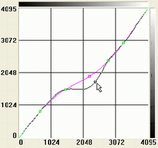Mit Hilfe von fünf verschiedenen Fixpunkten kann die Gammakurve frei gestaltet werden. Hat der Anwender seine gewünschten Veränderungen vorgenommen, kann er diese an den Projektor „senden“ und dort unter Gamma „Custom“ abrufen.
