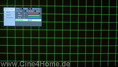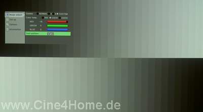 „Videophile Extremisten“ legen aber großen Wert auf absolute Perfektion. Und sie war bei unserem Test auch ganz ohne Bemühen der speziellen PC-Software schnell erreicht. Es genügte, im RGB Menü des Projektors Rot um einige Punkte zu reduzieren.