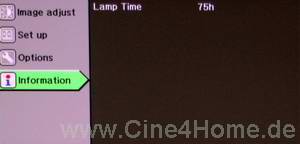 "Information" Bei der Information Rubrik handelt es sich um eine reine Statusanzeige, die lediglich die bereits abgelaufene Lampenzeit anzeigt.