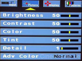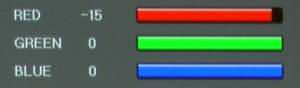 Bei der Farbtemperatur gibt es sogar nur ein einziges Werkspreset, dafür aber das für die Video-Darstellung einzig wichtige: „D65“ (6500K). Eventuelle Nachkorrekturen können mit drei separaten Rot-, Grün- und Blau- Reglern vorgenommen werden. Sie beeinflussen alle Helligkeitsbereiche gleichermaßen, eine Unterteilung in „Bias“ und „Gain“ gibt es nicht.