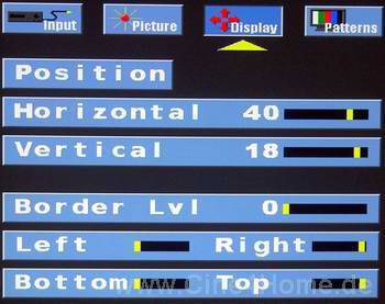 "Display" Das Display Menü wiederum befasst sich mich Parametern, die die Bildgeometrie und Ausrichtung beeinflussen.