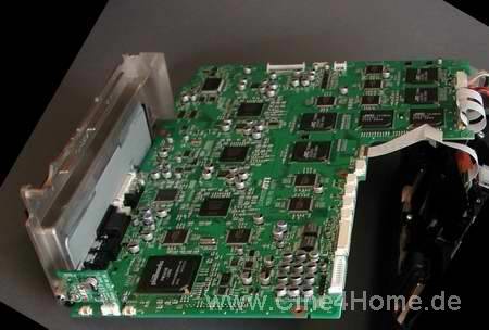 Die Platine ist aufwändig bestückt, was zeigt, wie viel Technik eine Full-HDTV Projektion erfordert. Auf beiden Seiten des Mainboards befinden sich zahlreiche ICs.