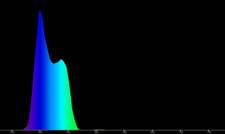 Im Diagramm oben ist nur ein minimaler und absolut gleichmäßiger Rotüberschuss zu erkennen. Dadurch wird die Farbdarstellung kaum sichtbar ein wenig zu warm (ca. 6300K).