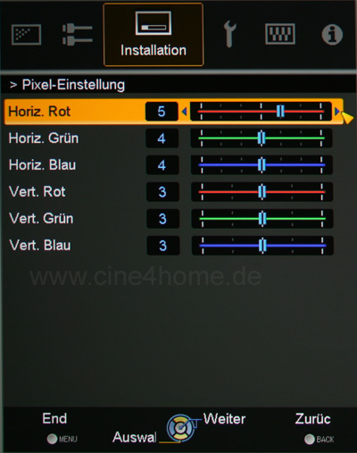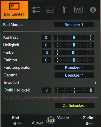 Somit ist es möglich, für jede Bildgröße und jeder Raumbegebenheit die optimale Mischung aus Kontrast, Schwarzwert und Helligkeit zu finden, mehr dazu im Bildteil dieses Tests.