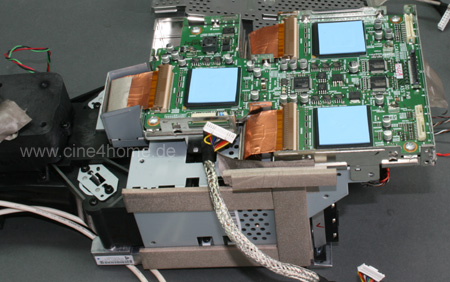 Darunter sieht man die Rückseite eines der D-ILA Panels