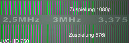 In der Serie standen der HD1 / 100 öfter in Sachen Fabhomogenität in der Kritik. Immer wieder gab es Geräte, die eine sichtbare Verfärbung einer Bildhälfte, meist ins Rötliche, aufwiesen. Dementsprechend gab es Rückläufer, die den Hersteller offensichtlich dazu veranlasst haben, die Fertigungstoleranzen zu verbessern. Tatsächlich zeigte keines der von uns getesteten Seriengeräte störende Farbwolken, sondern wies auch bei schwierigen, mittelhellen und bildfüllenden Grauflächen eine gleichmäßige Farbtemperatur bis zu den Randbereichen auf. Somit punkten die neuen Modelle 350 / 750 auch in dieser Disziplin und setzen neue Maßstäbe in Hinblick auf die Konkurrenz.