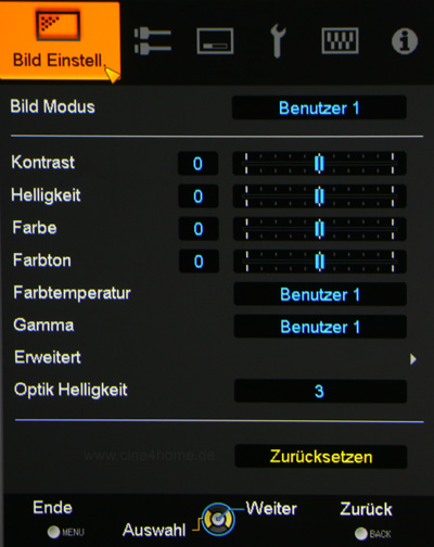 Nicht verändert wurde der Gamma-Equalizer, lediglich die Übersetzungsfehler wurden diesmal endlich beseitigt, wie sich dies für einen Projektor dieser Preisklasse gehört.