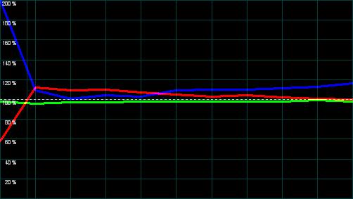 Diese Toleranzen haben sich in der Praxis bewährt, da sie aus normalen Sichtabständen nicht wahrgenommen werden. Sollte die Konvergenz doch einmal schlechter ab Werk ausfallen, so kann sie zumindest pixelweise im Bildemenü korrigiert werden. Jede Grundfarbe kann hier individuell vertikal und horizontal verschoben werden.