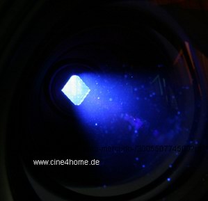 Diese zweite Blende verkleinert die Einstrahlwinkel in die LightEngine und verhindert so Reflektionen in den Randbereichen und damit Streulicht. Da sich eine Oberflächenreflektionen dennoch nicht gänzlich verhindern lässt, wird das Reststreulicht am anderen Ende des Lichtweges, in dem Objektv nach oben beschriebener Methode nachgefiltert.